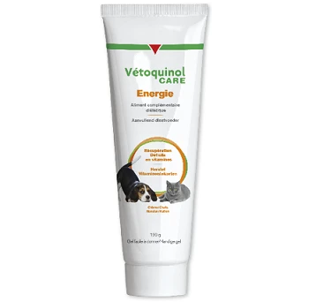 Energie de Vétoquinol Care est un gel riche en calories et en vitamines et a un goût de poissonirrésistible. Ce gel a une excellente assimilation, même en cas de perte d’appétit.